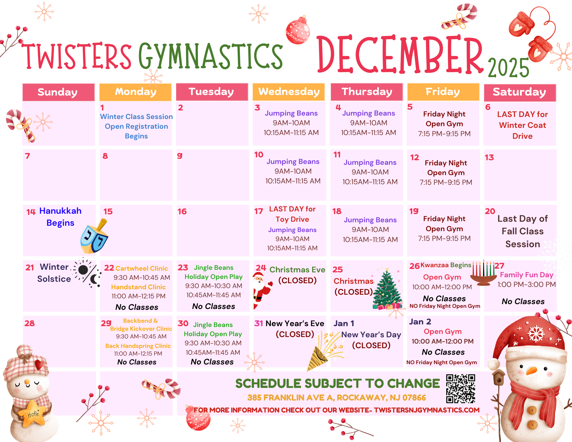 Our last Friday Night Open Gym of 2025 will be Friday, 12/19.